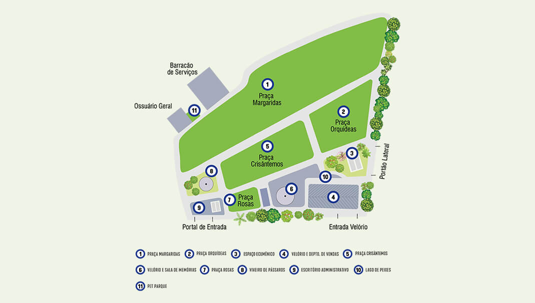 O Memorial Cidade Jardim sediado num bairro nobre da cidade de Rio Claro, SP, tem como permanente propósito a prestação de serviços humanizados buscando minimizar a dor de seus clientes e familiares através de um atendimento acolhedor, com respeito e seriedade. Em uma área ampla com um belo projeto paisagístico ornamentado com jardins, espelho d’água com carpas e viveiro de pássaros, oferece uma estrutura digna para homenagear a memória daqueles que partiram.